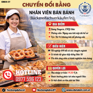 Bạn đã tốt nghiệp Đại học tại Việt Nam và đang tìm kiếm cơ hội làm việc trực tiếp tại Đức mà không cần mất 3 năm học lại nghề? Chương trình Chuyển đổi văn bằng (Visa 18B) diện Nhân viên bán bánh (Bäckereifachverkäufer/in) tại bang Bayern chính là lộ…
